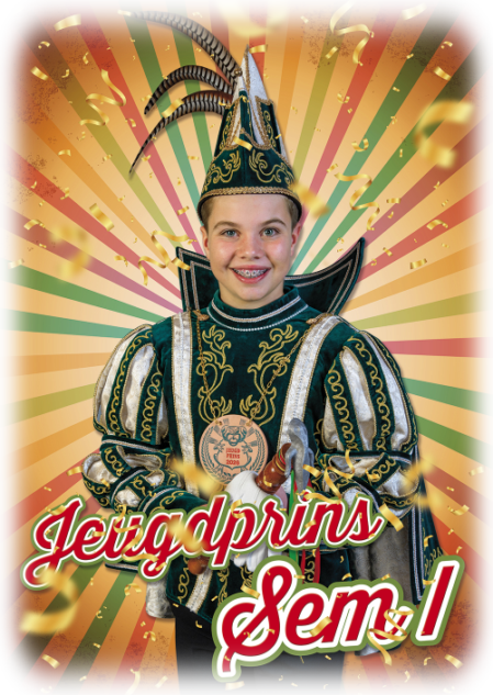 Aafgeloupe seizoen haet Sem al flink gaas gegaeve biej de Jeugdraod. Noe moog d’r dit jaor zélf as Jeugdprins de scepter zweije. Hae haet 't vastelaovesblood neet van vraemdje en is ein echte vereinigingsjóng. Hae is actief bie de voetbalclub en löptj gruuets in de maot biej de sjötterie as Jeugd Tambour-Maître.