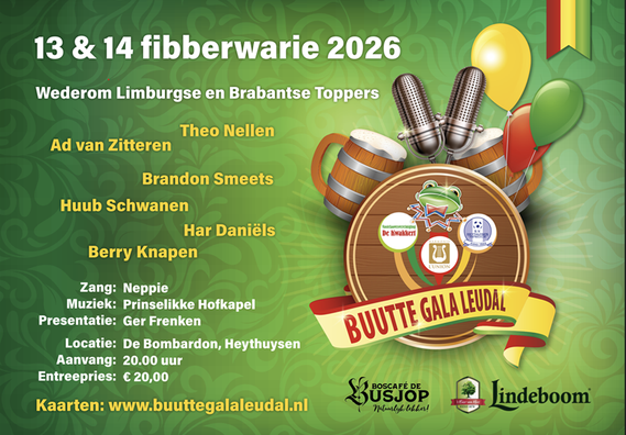 Er is toch ook dit jaar nauwelijks nog een betere manier te bedenken om in de juiste carnavalsstemming te komen, als om met familie en vrienden naar het Buutte Gala Leudal te gaan.De alweer 21e editie van het reeds overbekende Buutte Gala belooft weer een fantastisch spektakel te worden. Naast bekende Limburgse Buuttereedners en Brabantse tonpraters, zullen in deze editie ook magische momenten hun opwachting maken.